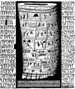 THIS is the story of Taffimai Metallumai carved on an old tusk a very long time ago by the Ancient Peoples. If you read my story, or have it read to you, you can see how it is all told out on the tusk. The tusk was part of an old tribal trumpet that belonged to the Tribe of Tegumai. The pictures were scratched on it with a nail or something, and then the scratches were filled up with black wax, but all the dividing lines and the five little rounds at the bottom were filled with red wax. When it was new there was a sort of network of beads and shells and precious stones at one end of it; but now that has been broken and lost--all except the little bit that you see. The letters round the tusk are magic--Runic magic,--and if you can read them you will find out something rather new. The tusk is of ivory--very yellow and scratched. It is two feet long and two feet round, and weighs eleven pounds nine ounces.