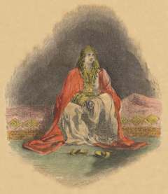 The procession at last reached the capital of the sultan, where all was prepared for their reception with still more brilliancy than in the other cities. The sultana, an elderly woman of majestic appearance, awaited them, with her whole court, in the most splendid saloon of the castle. The floor of this room was covered with a large carpet; the walls were adorned with bright blue tapestry, which was suspended from massive silver hooks, by cords and tassels of gold.