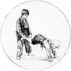 Ragged, dirty, and unkempt; untrained in all the pretty graces of refinement; deprived of all the fostering care of the home, how can the children of the street afford the artist any subjects for his canvas? Because, in spite of deprivation and poverty, they possess the imperishable treasure of a happy heart; and happiness is the true secret of the beauty of childhood. The child's buoyant vitality is proof against any disadvantages in his external surroundings; for his horizon is limited to the present. Yesterday's hunger is quickly forgotten in to-day's plenty; the fatigue of the morning's toil vanishes in the evening's frolic; even the wounds of a cruel blow are readily healed by a friendly word. Unconscious of any disparity between himself and others, he is equally contented with his lot, whether his clothing be velvet or rags, whether his play-ground be a royal park or the streets of a great city.