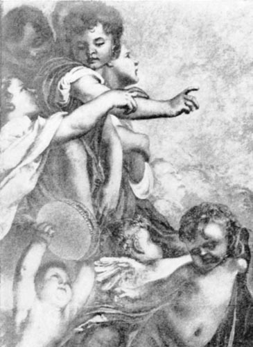 If Titian's child-angels stand for the highest attainment in the idealization of child beauty, those of Rubens, on the other hand, are the most human and lovable ever conceived in art. Their lovely baby forms cluster in countless numbers about the glorified Virgin, joyously bearing palm and wreath in token of her triumph.