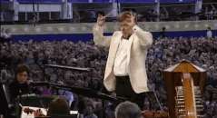 This was performed in New York City 2004 by Johann Strauss Orchestra and the Harlem Gospel Choir. The music conductor was Andre Rieu.