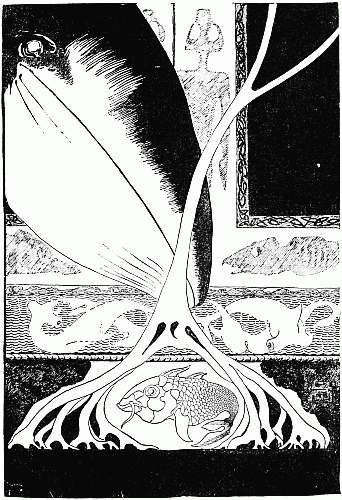 HERE is the Whale looking for the little 'Stute Fish, who is hiding under the Door-sills of the Equator. The little 'Stute Fish's name was Pingle. He is hiding among the roots of the big seaweed that grows in front of the Doors of the Equator. I have drawn the Doors of the Equator. They are shut. They are always kept shut, because a door ought always to be kept shut. The ropy-thing right across is the Equator itself; and the things that look like rocks are the two giants Moar and Koar, that keep the Equator in order. They drew the shadow-pictures on the doors of the Equator, and they carved all those twisty fishes under the Doors. The beaky-fish are called beaked Dolphins, and the other fish with the queer heads are called Hammer-headed Sharks. The Whale never found the little 'Stute Fish till he got over his temper, and then they became good friends again.