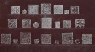 In order to measure high heat temperatures, the eminent Ceramist and Scientist, Professor Seger, formulated a series of little clay tests of regularly increasing infusibility. These tests are known as Pyrometric Cones, and are manufactured for pottery use. They approximate the temperatures quite accurately, and have largely taken the place of other tests. A trial or two will determine the cones needed for any particular body or glaze. Two cones are used ordinarily. A little clay pinched about the base will keep them upright, and they are placed on a brick or other support in a Glost kiln, or on a piece of ware in a Biscuit kiln, raised so as to be in range of the peep hole. The lower cone will be affected first, and the top will be seen to tip gradually, until it bends to the base, and is a warning to watch the kiln closely, as the second cone will go down soon after. The firing is usually stopped when the cone is half over.