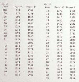 Below is a list of the approximate degrees of heat shown by the melting point of Seger Cones, according to number.