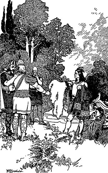 "Let every man have his sword ready," cried Thorfinn. "But do not draw until I command. Let us go to meet them."