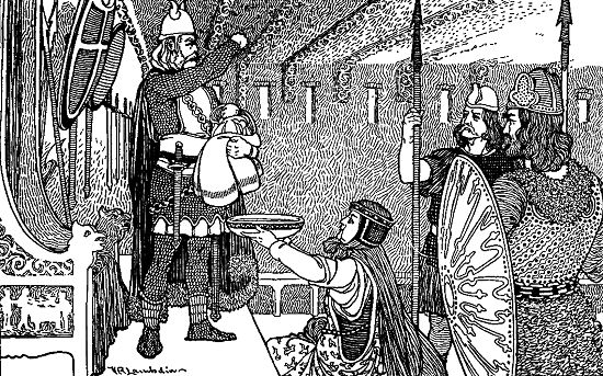 Some time after that a serving-woman came into the feast hall where King Halfdan was. She carried a little white bundle in her arms.