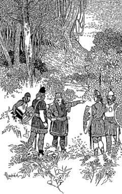 But Tyrker, still smiling and nodding his head, answered in German. He pointed to the woods and laughed and rolled his eyes. Again Leif asked his question and put his hand on Tyrker's shoulder as though he would shake him. Then Tyrker answered in the language of Iceland: