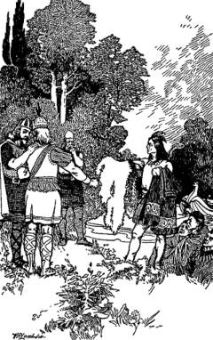 "Let every man have his sword ready," cried Thorfinn. "But do not draw until I command. Let us go to meet them."